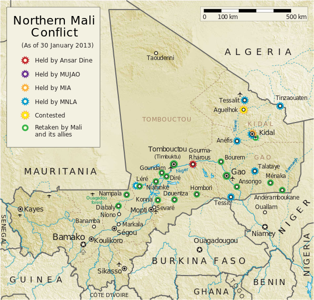 Mali at the height of the conflict, in January 2013. Source: Wikimedia Commons.