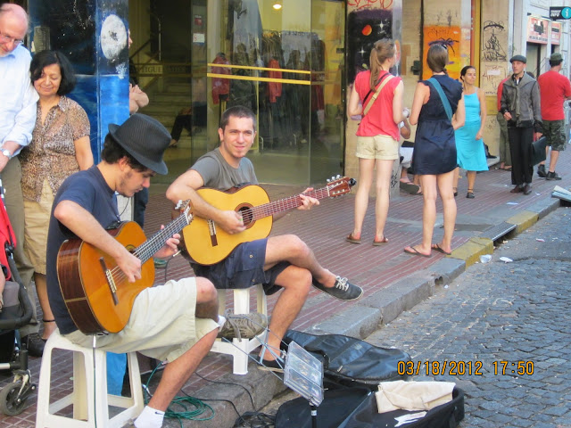 Yesterday I spent the day in San Telmo, exploring the huge craft and antique market that takes place there every Sunday. It was pretty amazing to see all the stands and people milling about. There was also a lot of live music, and I was happy just to stand and listen for a while to all the different groups playing along the street. Here are some pictures: