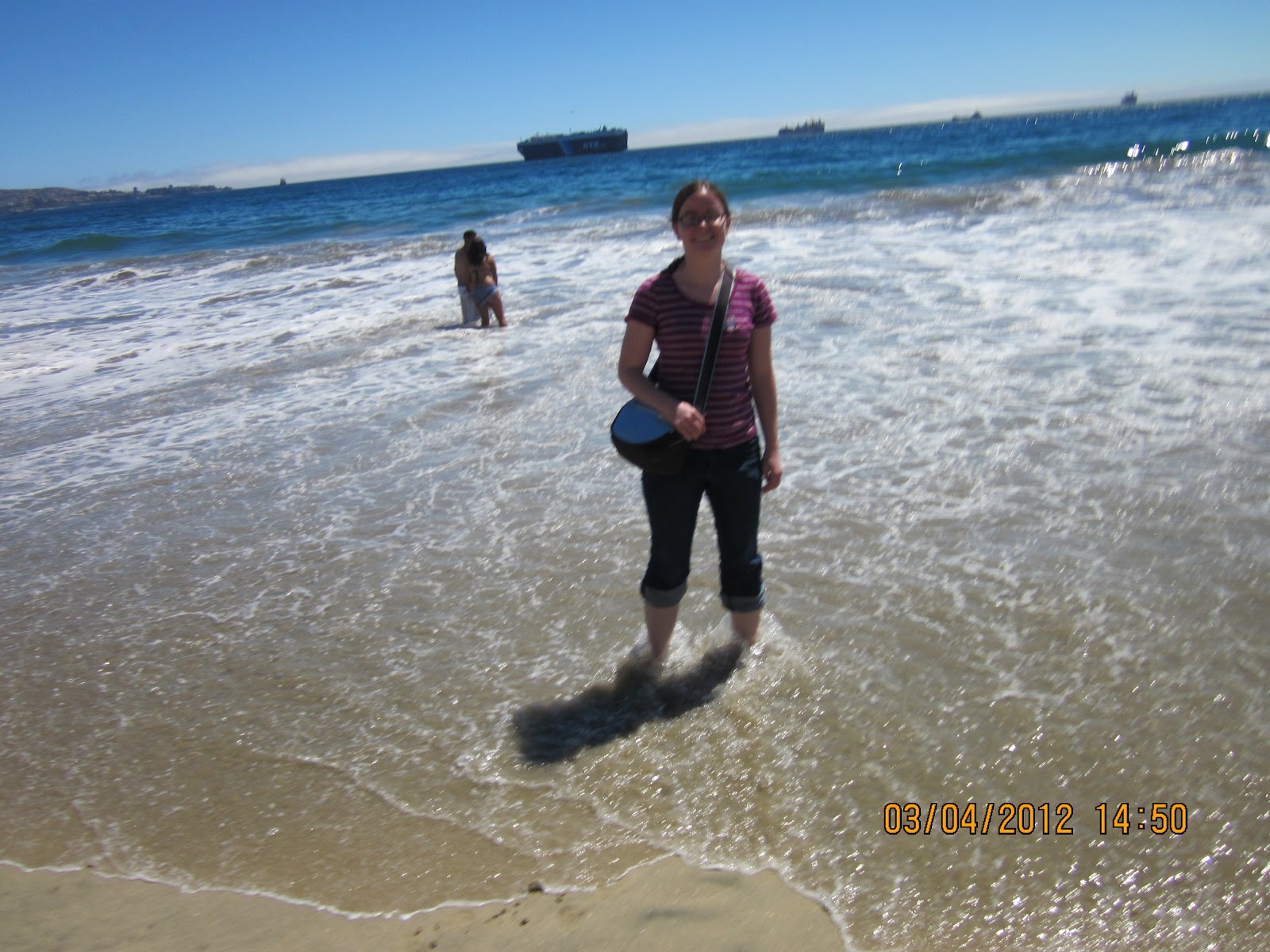 Sticking my feet in the Pacific Ocean. It was just as cold as it is in California!