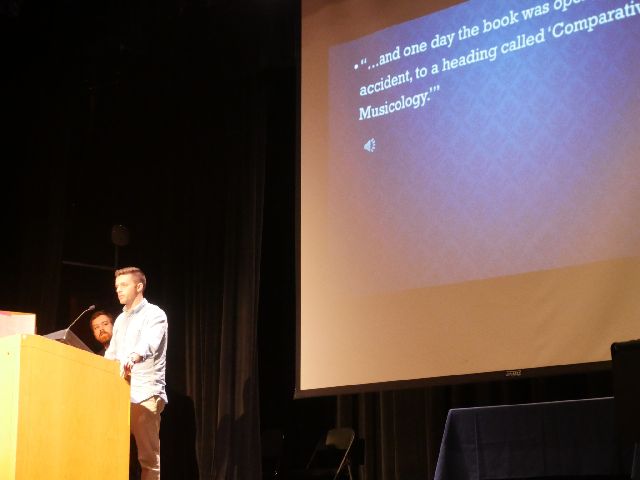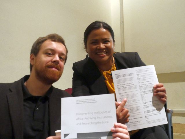 Hannah Davison (Development Editor, Adam Matthew Digital) with Aaron Bittel (Archivist, Adjunct Associate Professor, UCLA, Ethnomusicology) – Ethnomusicology: Global Field Recordings. Photo courtesy Shani Miller.