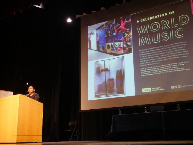 Welcome by Judith Smith, Founding Dean, UCLA Herb Alpert School of Music. Photo courtesy Shani Miller.