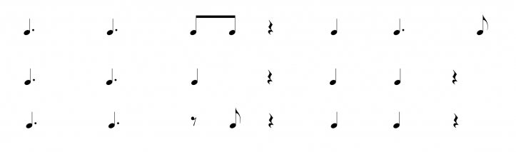 Figure 3: Related clave patterns common to various Congolese, Afro-Cuban, and West African musical genres.